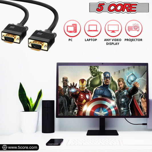 5 Core 3 Feet SVGA VGA Computer Monitor Cable Male to Male 1080p High Resolution - VGA 1001