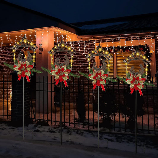 2 Pcs Nativity Scene Outdoor Yard Stakes Metal Christmas Light Decorations LED Christmas Decorations Nativity Scene Outdoor Solar Outdoor Lighted Nativity Scene for Pathway Garden Lawn (Classic)