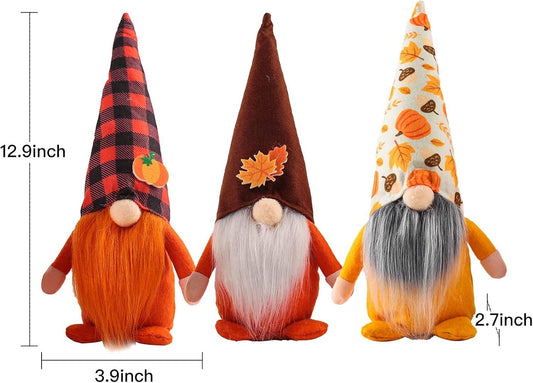 3 Pcs Fall Decoration Harvest Thanksgiving Decorations Gnomes Plush Elf Dwarf Doll Figurine with Pumpkin Autumn Maple Leaves