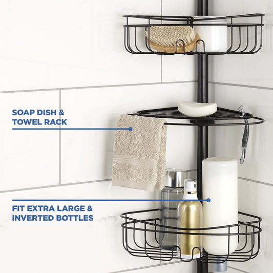 4 Tier Steel Tension Pole Shower Caddy with 3 Baskets & Soap Tray Shelf, Oil-Rubbed Bronze